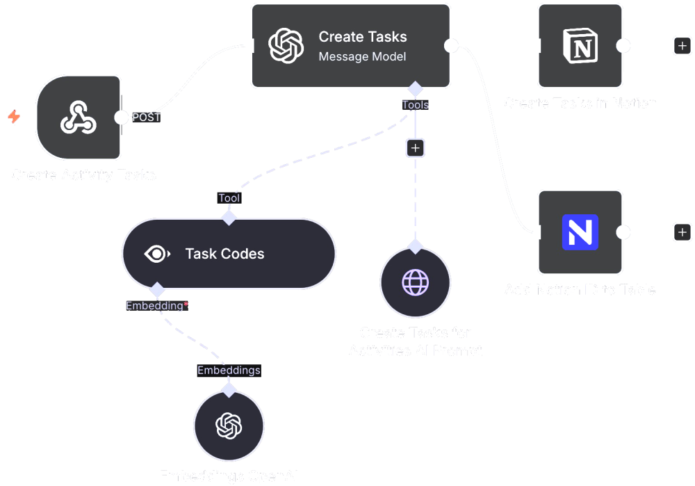 During automation, the AI assigns one or more relevant task codes to each activity defined in the Lesson Plan. These codes are then expanded into fully formed task descriptions, which include the task name, purpose, and estimated development time. The resulting Task List is automatically output to Notion, nested within the project’s existing module and activity structure.